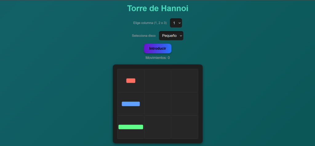 Implementación del clásico problema de las Torres de Hanoi utilizando recursividad. Este proyecto se enfoca en la solución de problemas lógicos y optimización algorítmica. Incluye una interfaz visual interactiva que permite al usuario ver cada movimiento de manera clara.